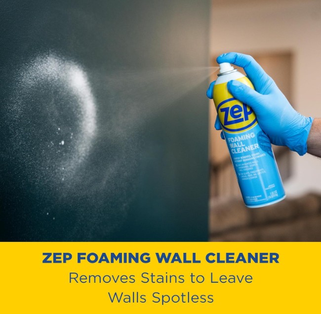 Zep Foaming Wall Cleaner is a professional-grade wall cleaner designed to lift scuffs, stains, fingerprints, grease, and crayon marks without damaging finishes or leaving behind residue. For use on walls, ceilings, woodwork, painted surfaces, vinyl coverings, and washable wallpaper, this scrub-free formula ensures a gentle yet effective clean. Trusted for its cleaning power and reliability, Zep Foaming Wall Cleaner helps keep your home looking its best with minimal effort.